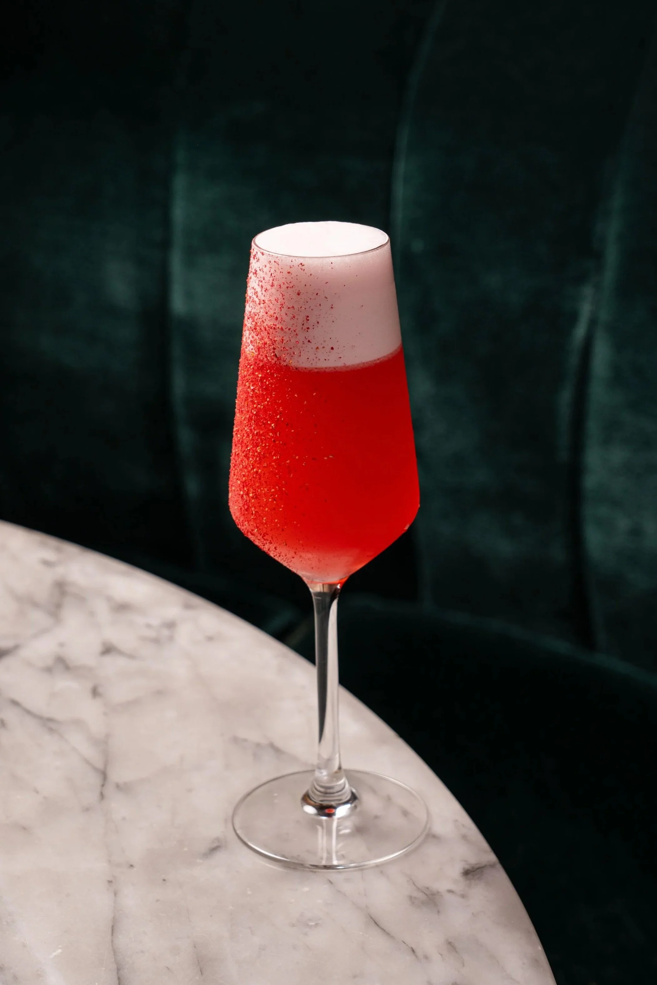 Absolut Vanilla Vodka, Strawberry Purée, Vanilla Syrup, and Double Cream, topped with Signature Harrods Prosecco