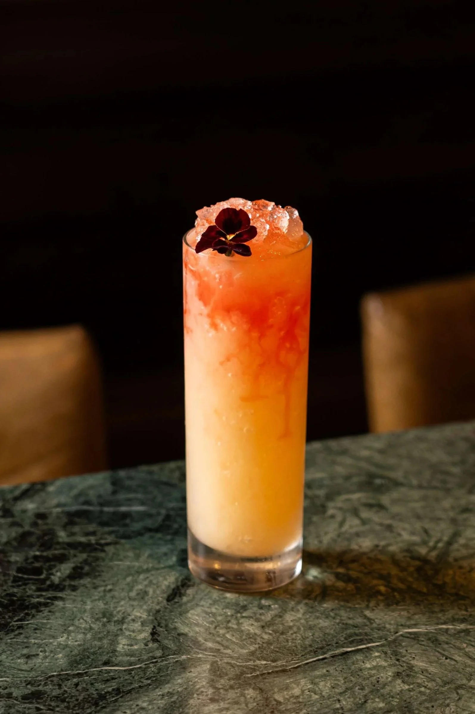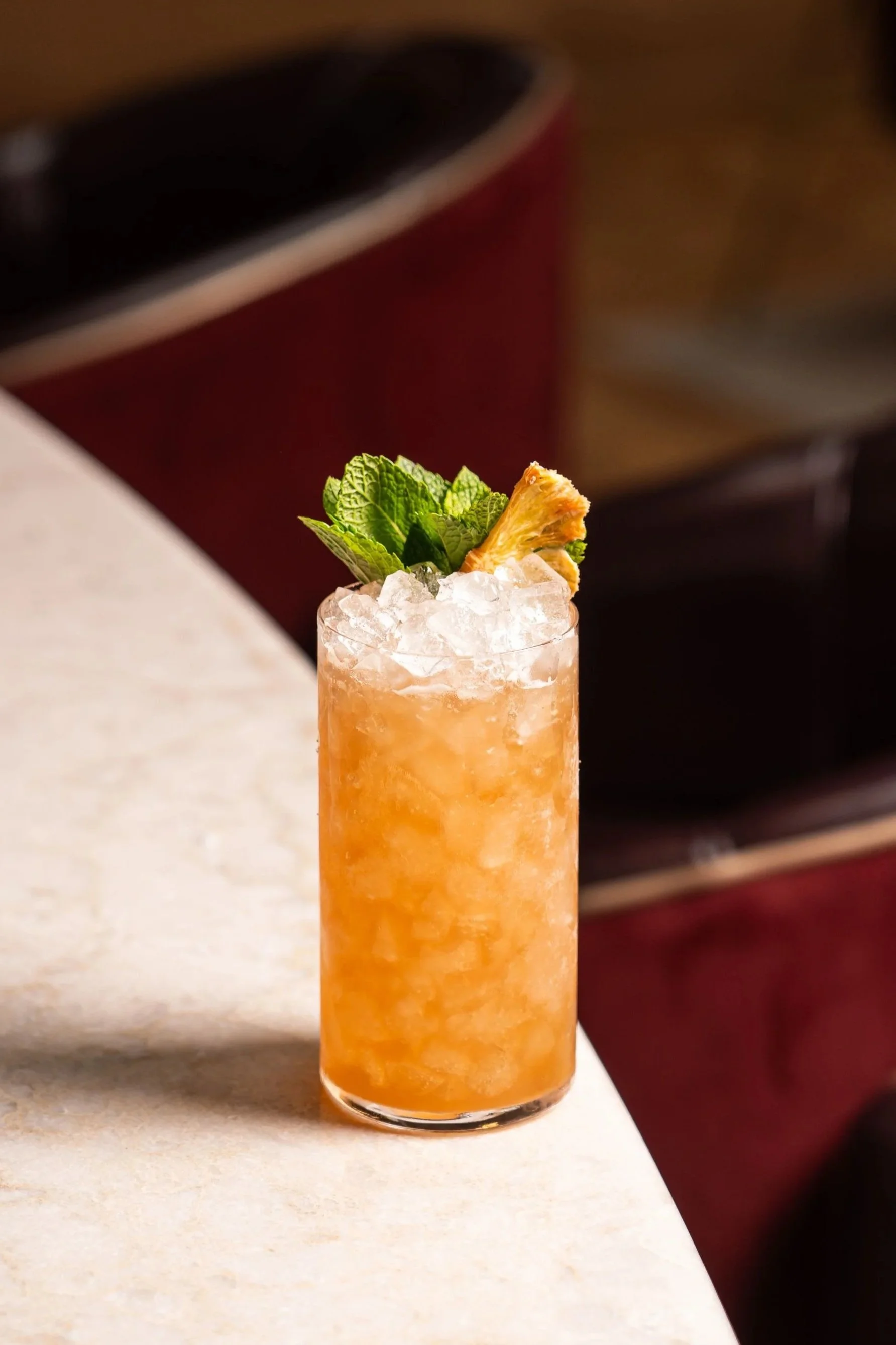 Bulleit Bourbon, Yellow Chartreuse, Hibiscus Syrup and Pineapple Juice, topped with Soda